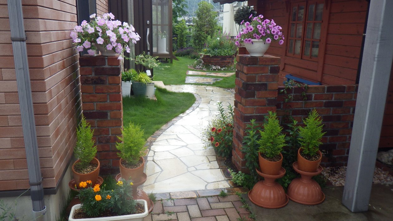 念願の庭園外構工事が完成し、満足しています。職人さんは、礼儀正しくとても仕事が丁寧で、細やかな気配りがあり、施主の要望にこたえてくれます。玄関前の階段と石張りは、職人技です。